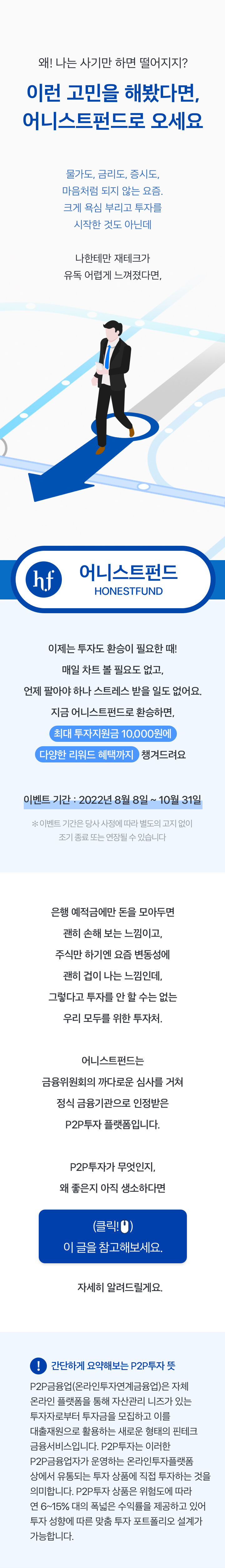 - 본 이벤트는 어니스트펀드 내 상품별 리워드 이벤트, 마케팅 동의시 수신되는 시크릿 이벤트 등과 중복 적용 가능합니다.