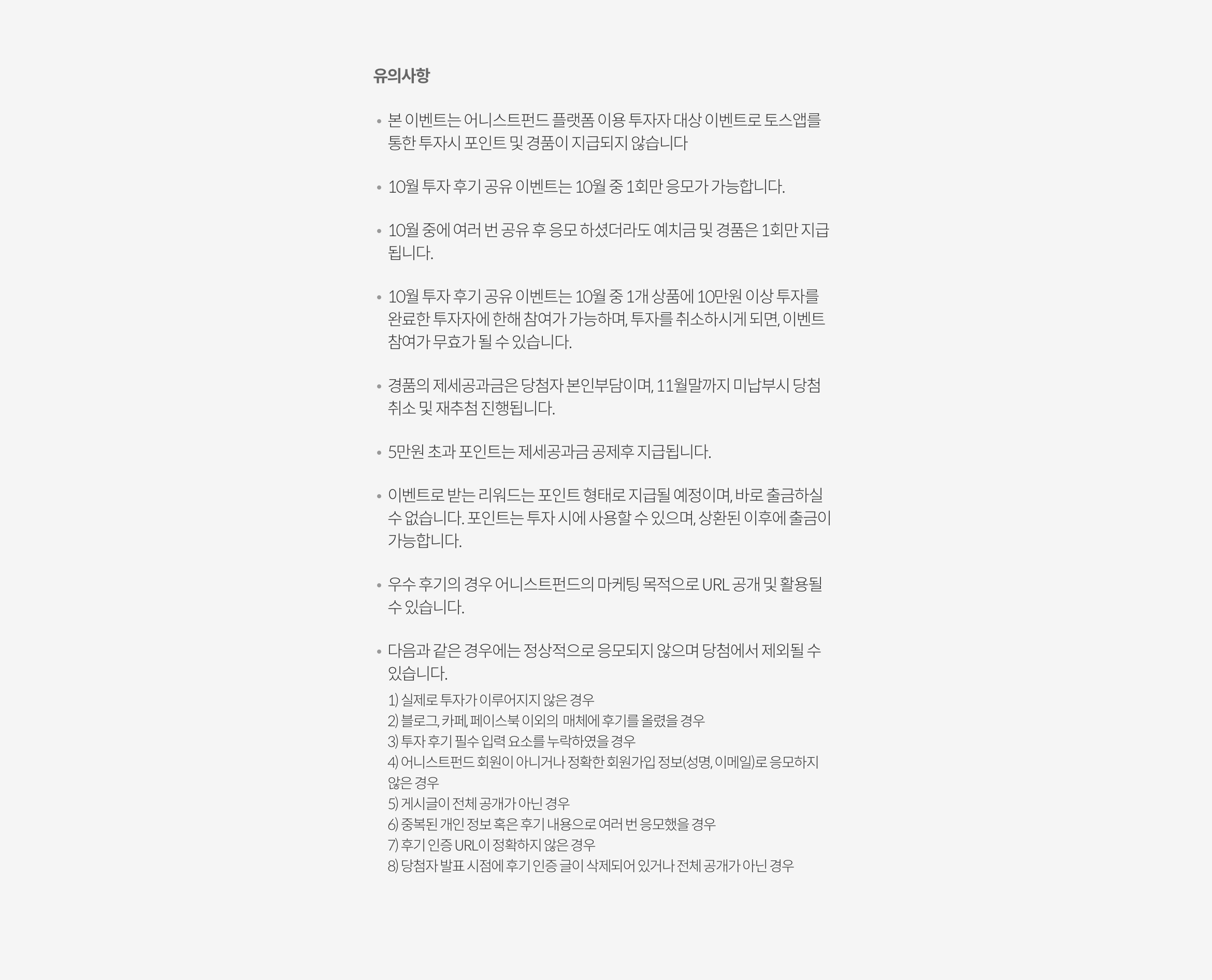 소중한 의견에 깊은 감사를 드리며 11월 투자후기 인증이벤트에도 많은 관심 부탁드립니다.