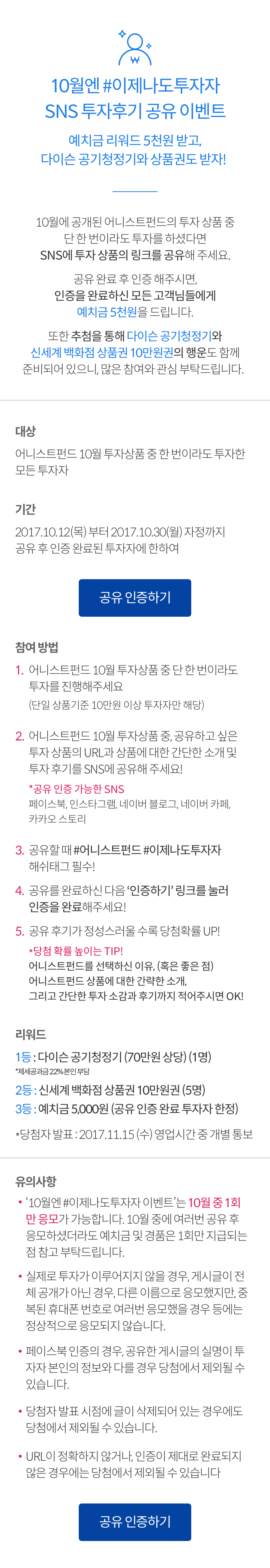 10월엔 #이제나도투자자 SNS 투자 후기 공유 이벤트 당첨자 발표